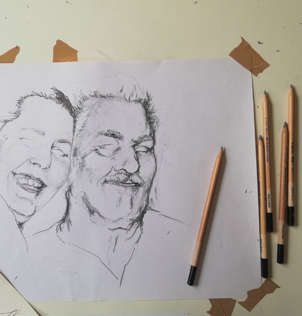 Tijdens mijn leven heb ik periodes gehad dat ik intensiever bezig was met schilderen, zoals tijdens middelbare school (tekenen als examenvak) en een jaar kunstacademie. Voordat het idee van [zelf]portret ontstond, heeft kunst echter nooit een vaste plek kunnen krijgen in mijn leven.